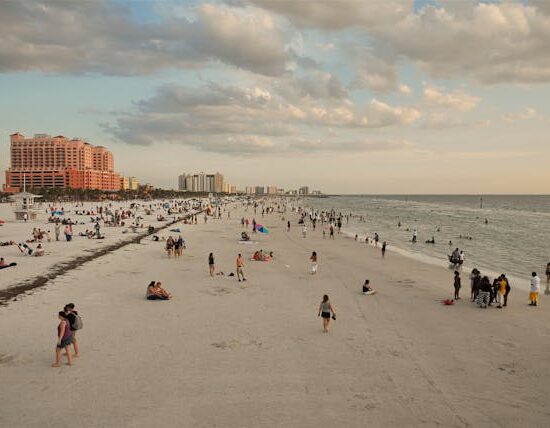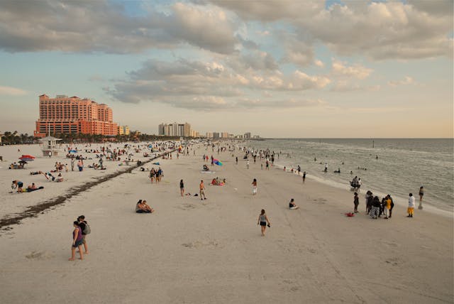 - Visita a Clearwater Beach, uma praia de renome mundial conhecida por sua areia branca e águas cristalinas, oferecendo atividades aquáticas, lojas e restaurantes à beira-mar.